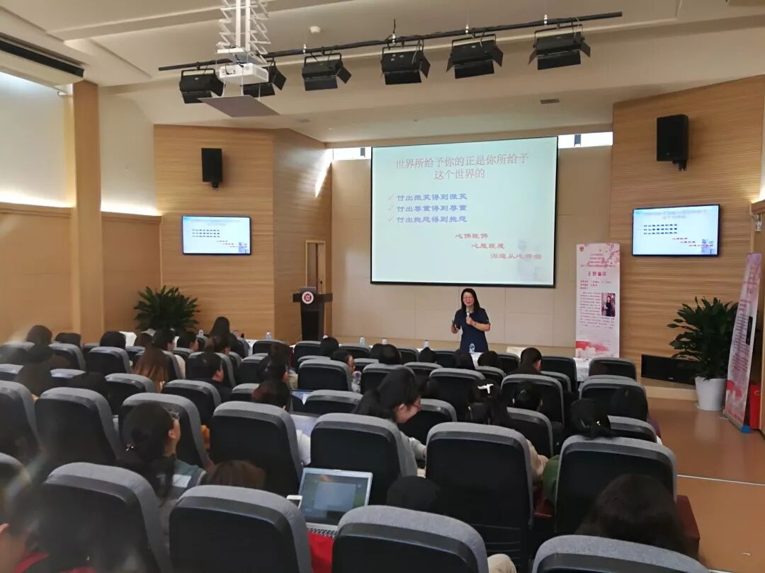 上海市三八红旗手汪美萍首先登场,以《沟通从“心”开始》为主题为全场师生奉献了一场精彩的讲座。