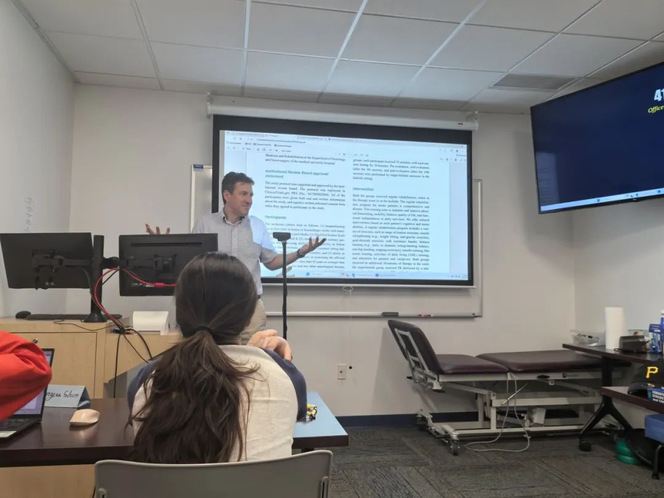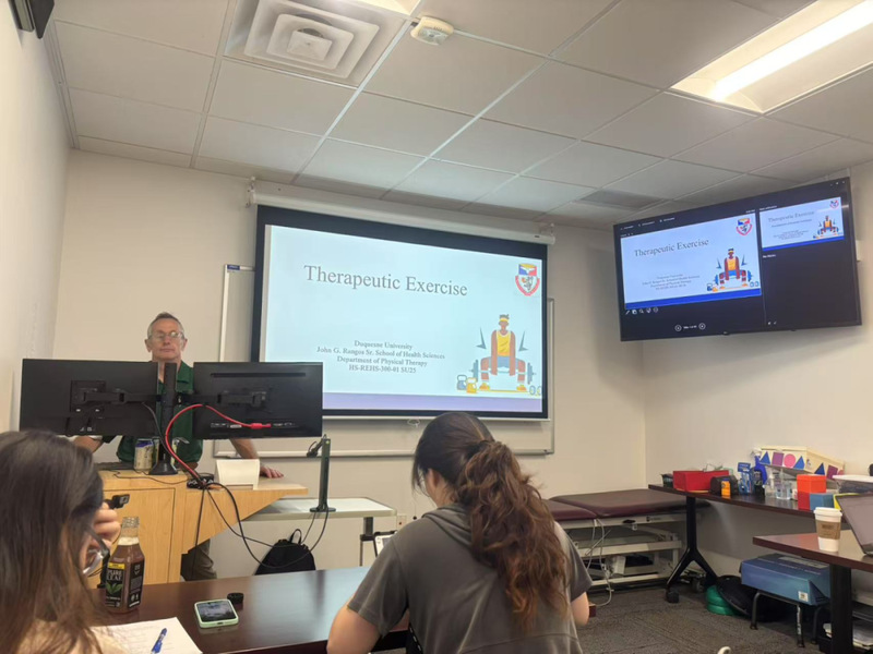 6月26日,Daniel教授从康复物理治疗师视角讲解了脑卒中康复。先介绍定义、分类与风险因素,借提问引发了同学们针对国内外脑卒中发病率的积极讨论。接着提出因大脑动脉分支特点,患者卒中后症状(感觉、肌肉、语言、认知等)各异,其中对侧忽视症状引发同学们的好奇与探讨,课堂关联神经科学相关知识,帮助同学们温故知新。