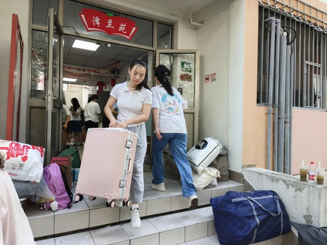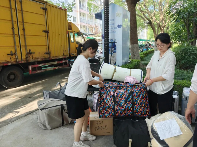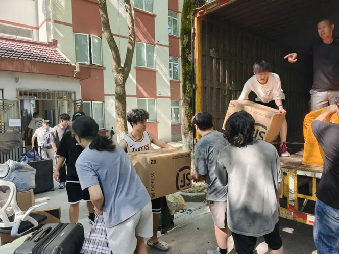 此次搬迁人数多、行李多,为确保搬家任务的高效和顺利,学院协调好搬家货车和大巴,并提前为同学们发放了面包牛奶作为早餐,每个细节都尽可能考虑周全。搬迁过程中,同学们真正做到“文明离宿、有序搬家”,带走所有个人物品,只留下温馨祝福,将最干净、整洁、舒适的寝室留给入住的新同学。