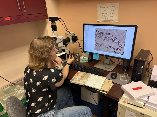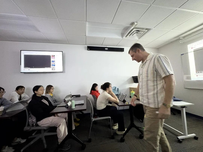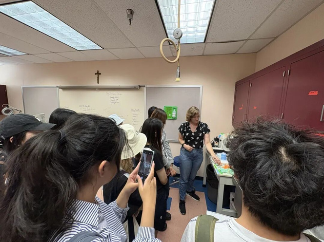 7月31日,Mattew为我们介绍他曾生活多年的华盛顿特区,后带领我们参观了他的实验室。他首先向我们介绍了rangos大楼曾作为篮球场的历史和再装修到如今面貌的故事,随后带同学们进入实验室,见识了实验室中的设备和动物标本等,并请实验室里的学姐展示了如何制作一份肌肉切片标本并在显微镜下的观察结果,最后向大家介绍生物力学实验室中的各种检测设备,以及评估方法例如平衡y测试等。最后他表示同学们在这段时间里学习非常认真,并和我们一一道别。