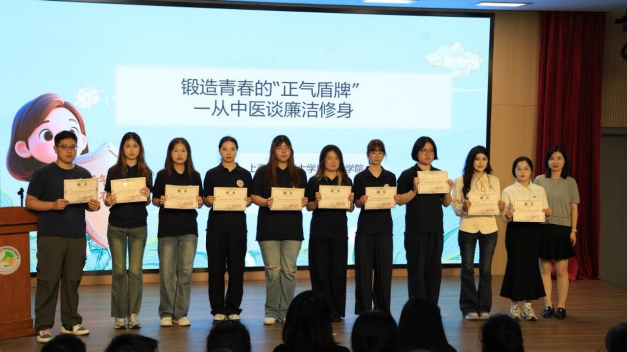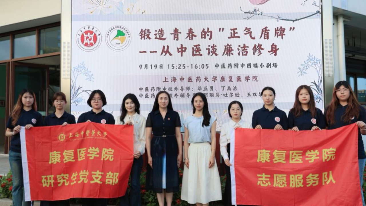 2025年9月19日,999全讯白菜网党委副书记毕亚男、研究生党支部书记丁禹洁带队前往999策略白菜官方网站附属浦东实验中学,组织研究生党员阿丽马·吐尔逊、王双琴及“岐黄轩”志愿者服务队,开展了题为“锻造青春的正气盾牌:从中医谈廉洁修身”的主题授课。999策略白菜官方网站附属浦东实验中学党支部书记范晓芳、德育处副主任俞伟平共同出席了本次活动。
