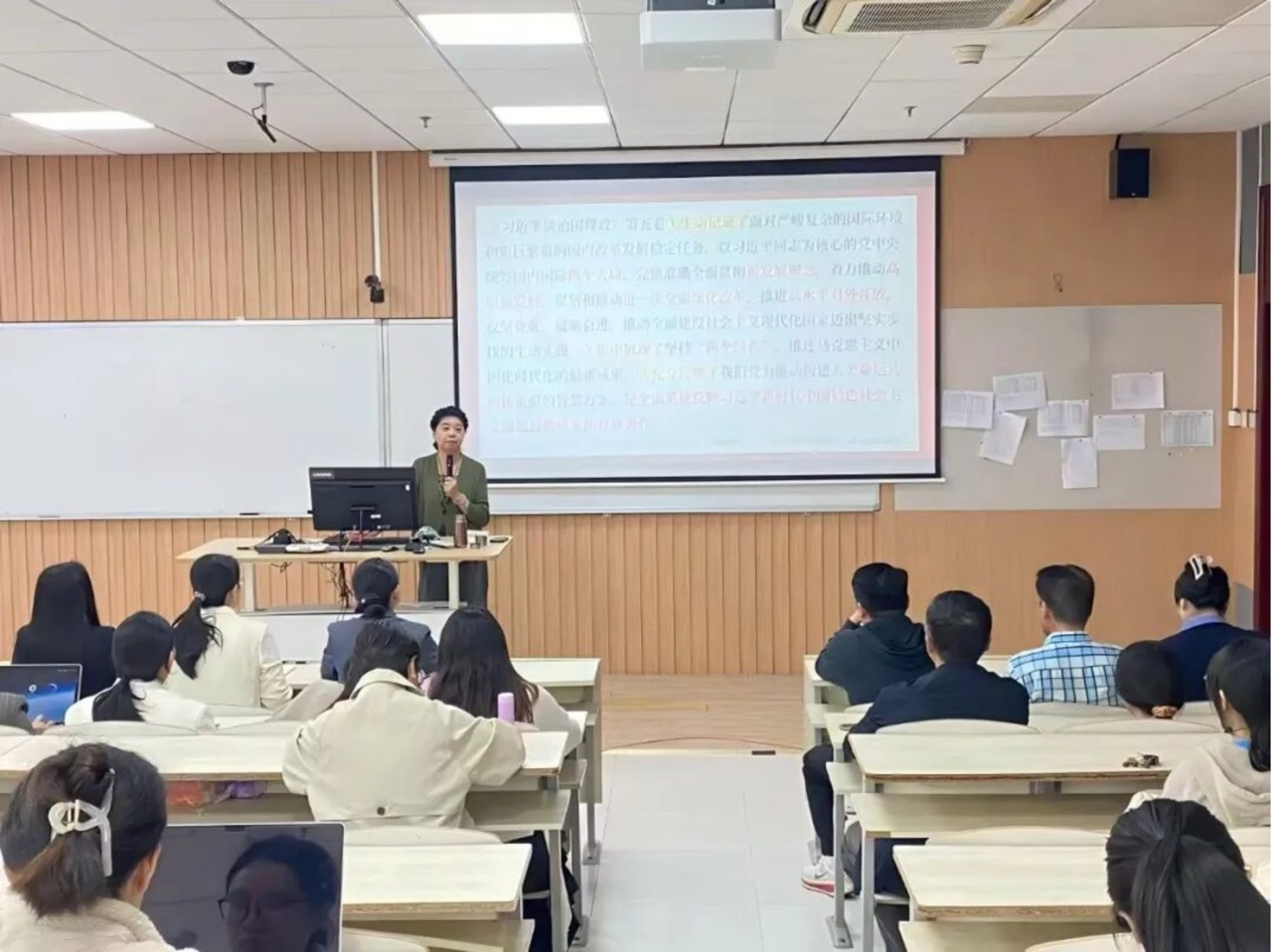 孙教授通过党课,生动导读了《习近平谈治国理政》第五卷的主要内容,为全院教职工和师生党员认真学习提供了清晰的学习思路。她指出,该著作生动记录了面对严峻复杂的国际环境和艰巨繁重的国内改革发展稳定任务,以习近平同志为核心的党中央统筹国内国际两个大局,完整准确全面贯彻新发展理念,着力推动高质量发展,谋划和推动进一步全面深化改革,推进高水平对外开放,攻坚克难、砥砺奋进,推动全面建设社会主义现代化国家迈出坚实步伐的历史进程;集中展现了坚持两个结合、推进马克思主义中国化时代化的最新成果;充分反映了我们党为推动构建人类命运共同体贡献的智慧方案,是全面系统反映习近平新时代中国特色社会主义思想最新成果的权威著作。